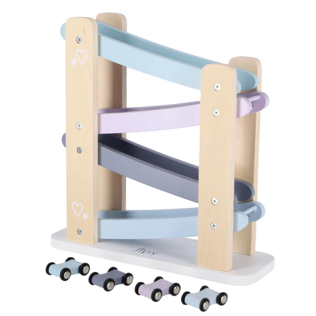 Unsere Holz-Autobahnrutsche mit 4 Fahrzeugen ist ein ideales Geschenk für Kinder und Eltern, die die spielerische Entwicklung ihrer Kinder unterstützen möchten.