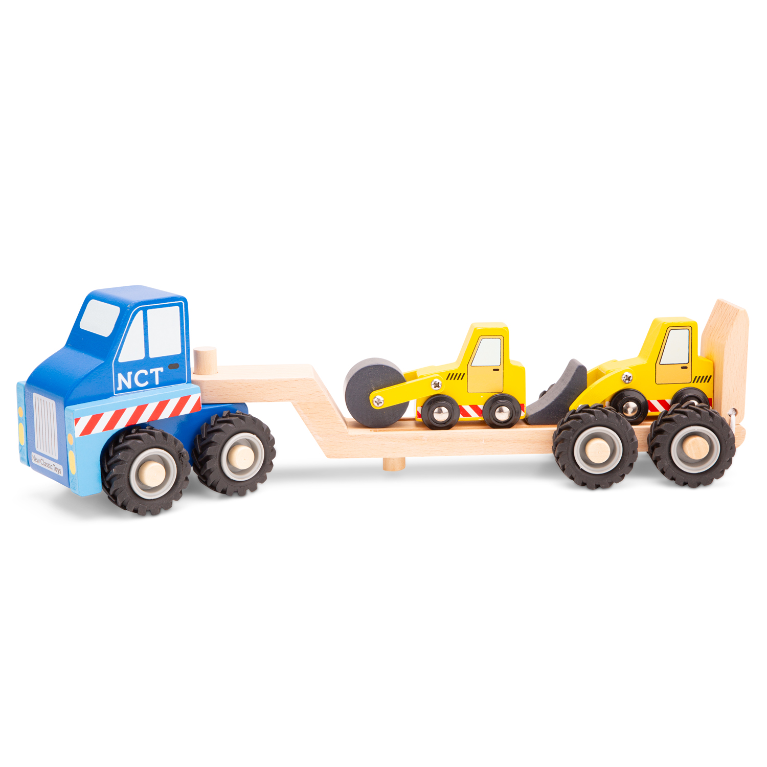 Kinder sind fasziniert von Spielzeugfahrzeugen, und dieser hölzerne Autotransporter mit zwei Baufahrzeugen von New Classic Toys ist eine fantastische Ergänzung für jede Spielzeugkollektion.