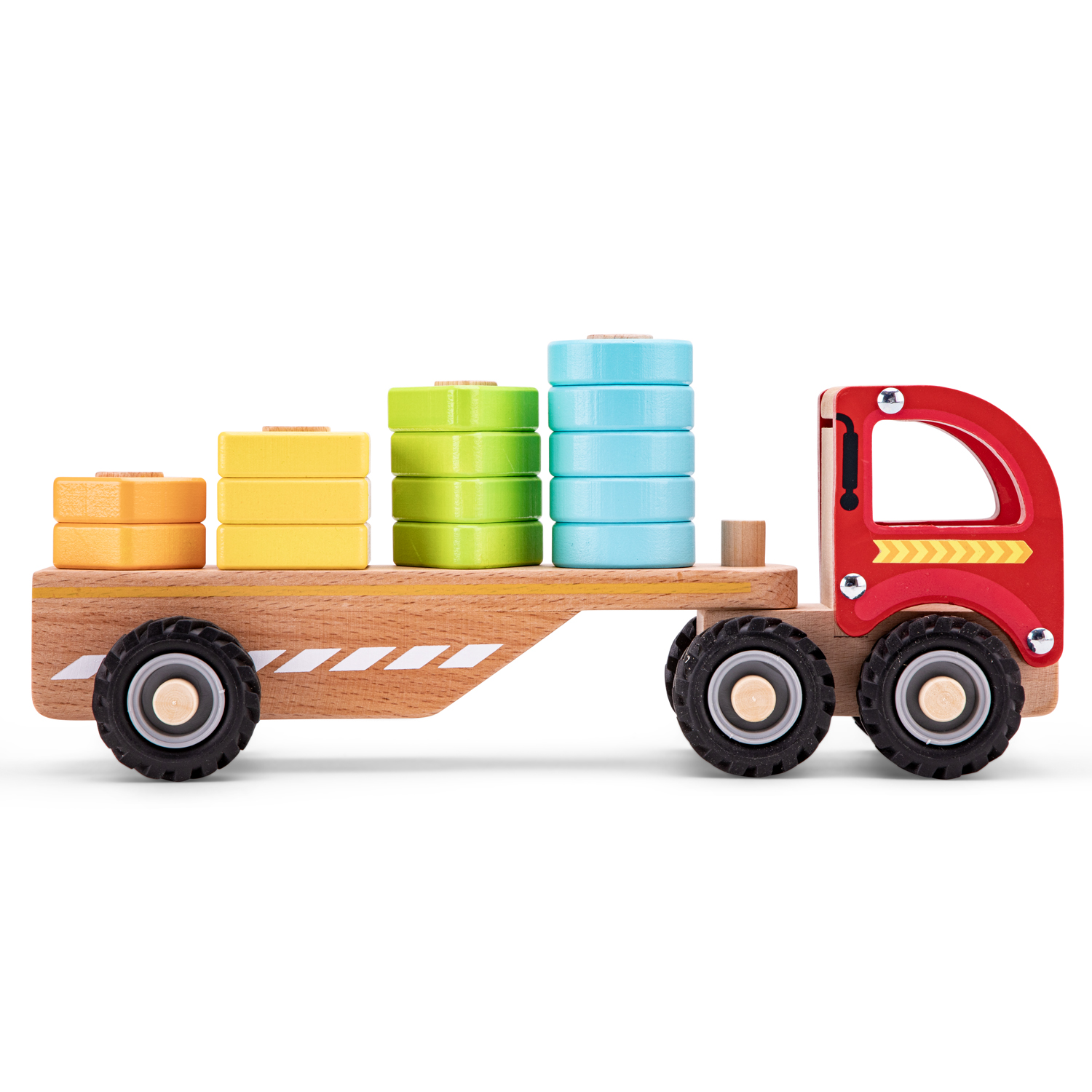 Der New Classic Toys Holz-Lastwagen GEOMIC mit Formensteckspiel ist ein vielseitiges Spielzeug, das das Erkennen von Formen, Farben und Mengen fördert.