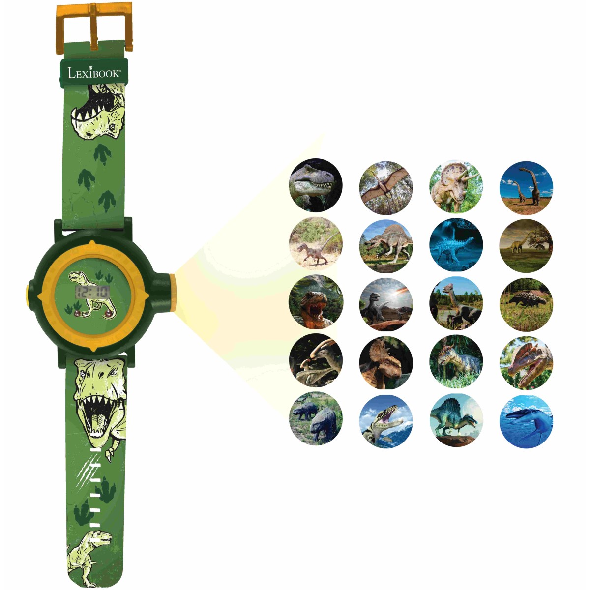 Digitaluhr mit Dinosaurier-Motiven kannst du 20 Bilder projizieren und die erstaunliche Dino-Bilder bewundern, wo immer du willst.