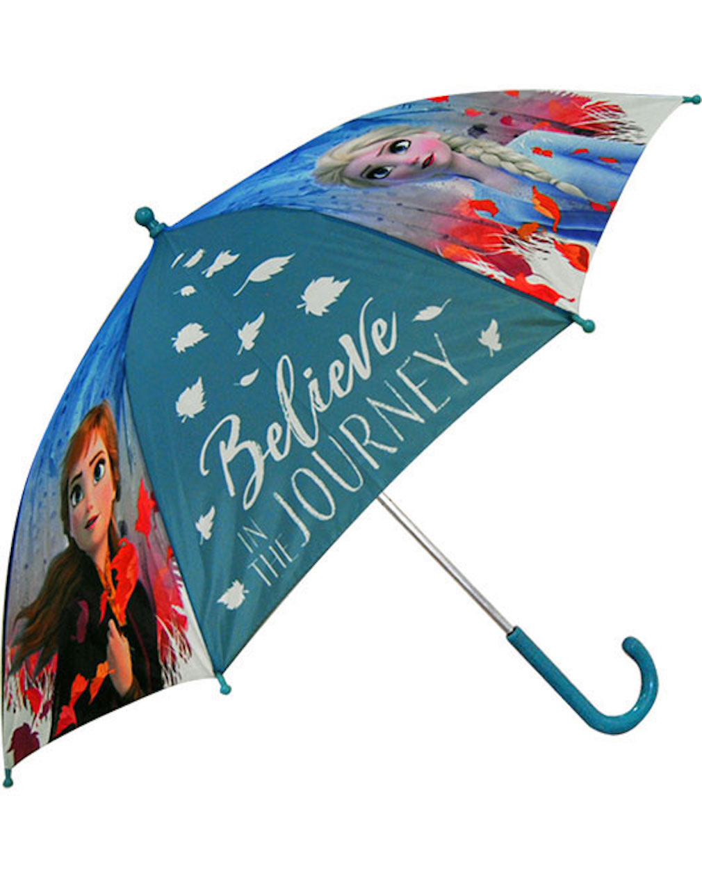 Der Disney Frozen Regenschirm ist ein stilvoller Regenschutz mit einem herbstlichen Hintergrundmotiv, das Anna und Elsa aus dem beliebten Disney-Film „Frozen“ zeigt.