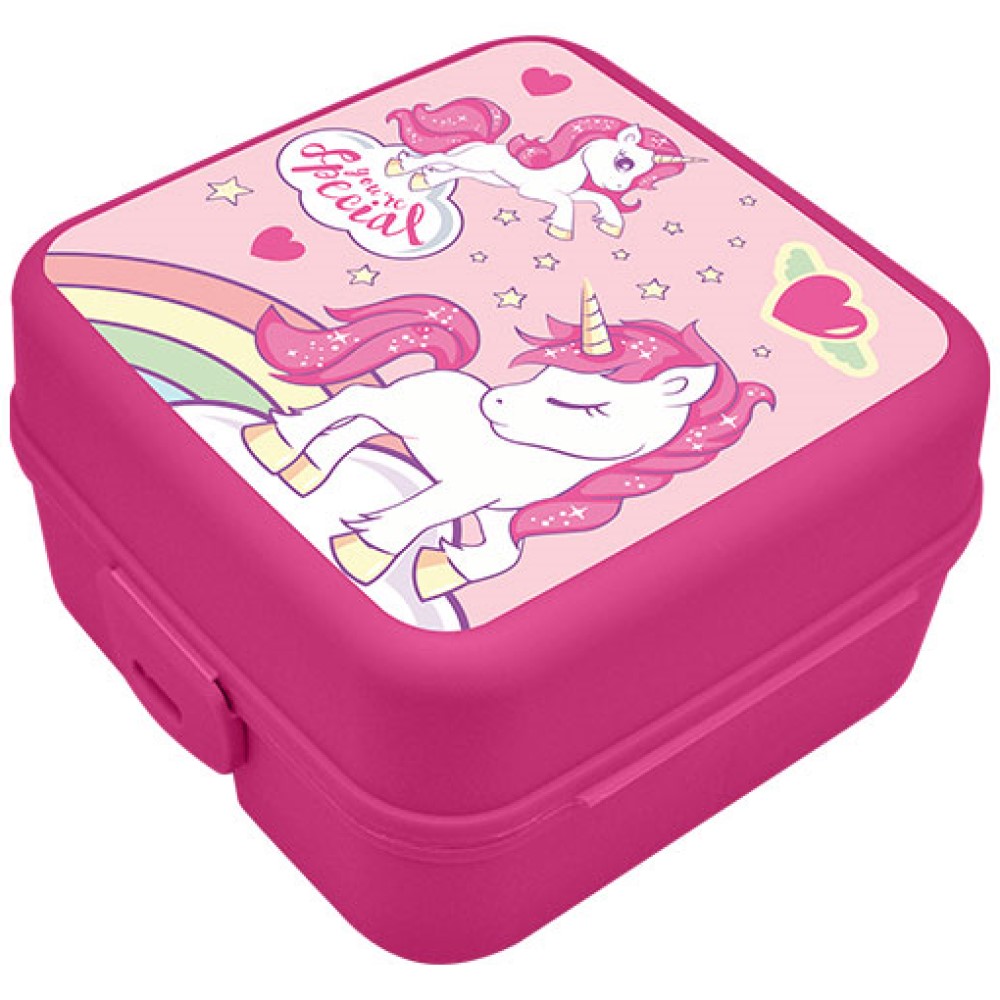 Diese Kinder Brotdose ist perfekt für kleine Einhorn-Fans! Sie verfügt über 4 Fächer, die ausreichend Platz für eine abwechslungsreiche und ausgewogene Mahlzeit bieten.
