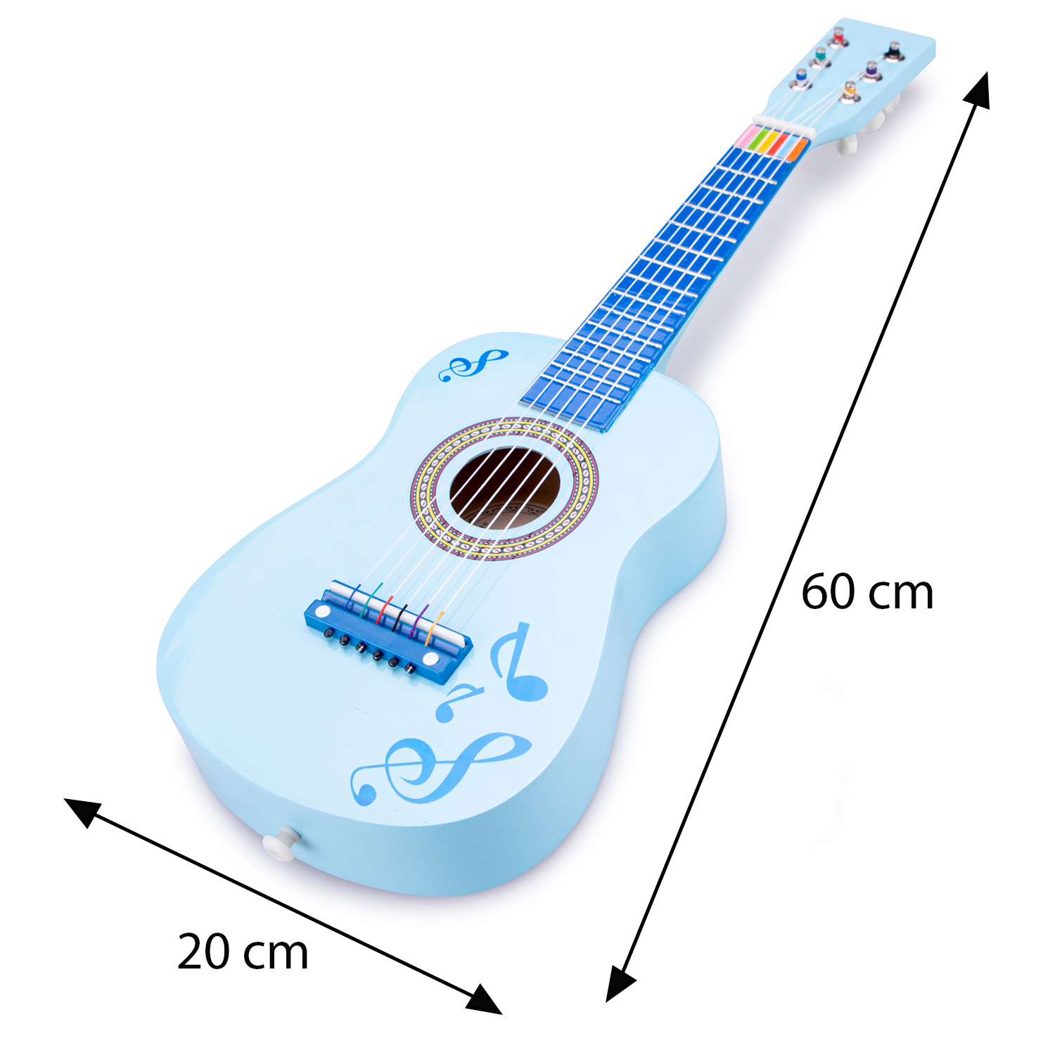 Unsere blaue Kindergitarre mit Notenmuster wurde speziell für kleine Hände und angehende Künstler entwickelt.