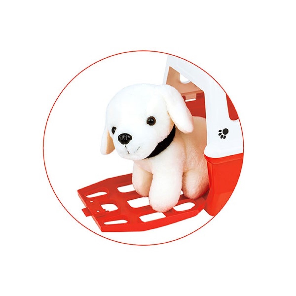 Ideal für kleine Tierärzte für Rollenspiele geeignet. Das Set ist mit einem weißen Hunde Stofftier und einer passenden Transportbox ausgestattet.
