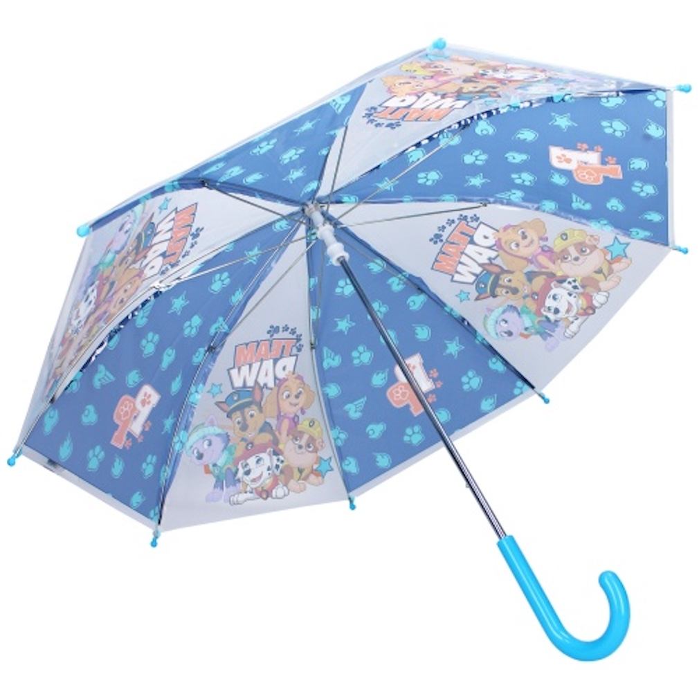 Dieser farbenfrohe Regenschirm bringt nicht nur fröhliche Abwechslung in graue Regentage, sondern begeistert auch kleine Fans von Skye, Chase, Marshall, Rubble und Everest aus der beliebten PAW Patrol-Serie.