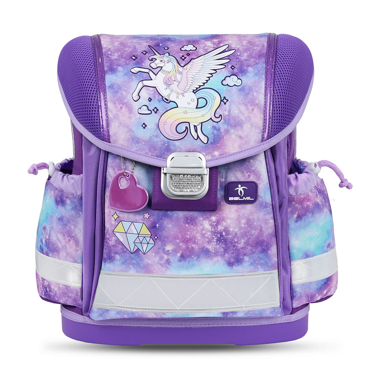 Rucksack Classy ergonomisches Schulranzen-Set 4-teilig „Diamond Unicorn“ mit Brustgurt