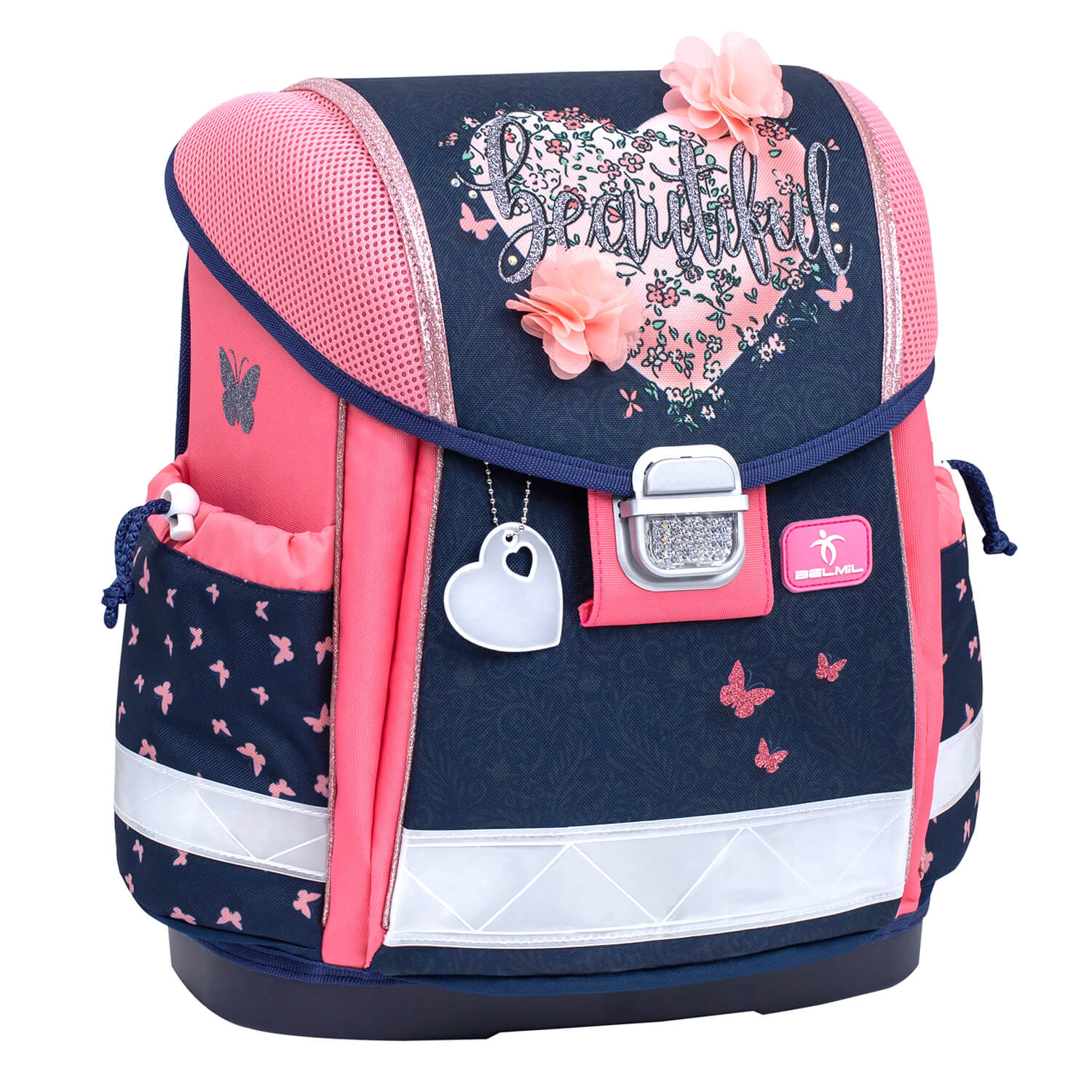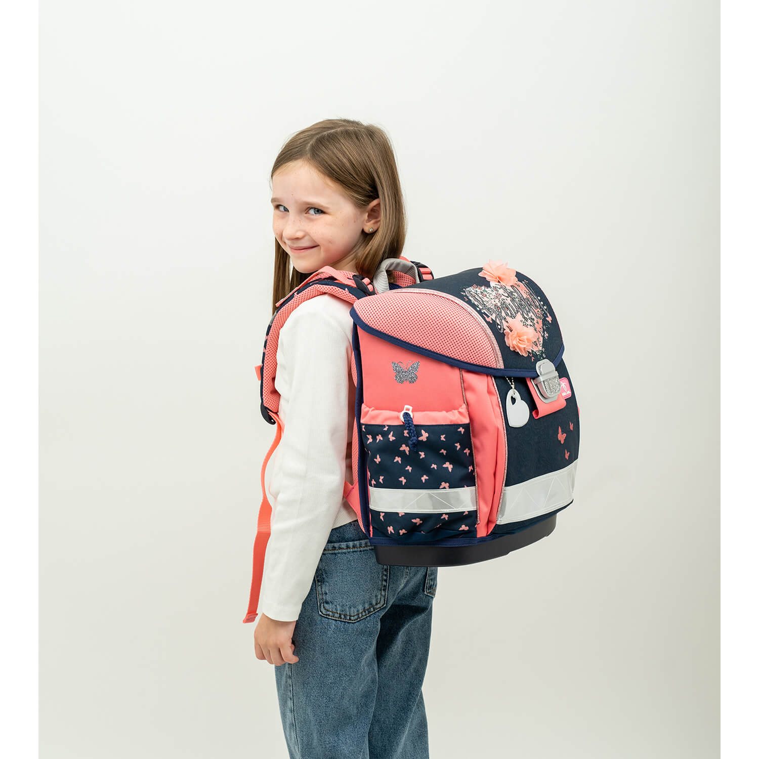 Rucksack Classy ergonomisches Schulranzen-Set 4-teilig „Beautiful Flowers“ mit Brustgurt