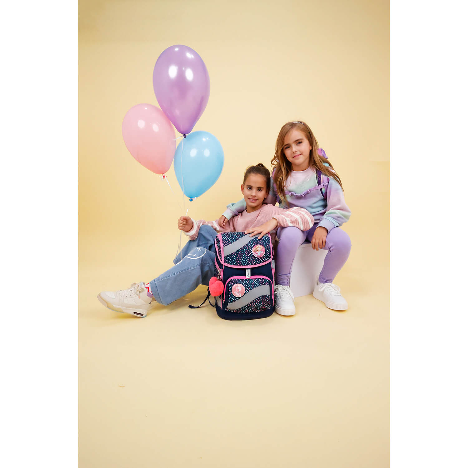 Lieferumfang: 1 Schulranzen, 1 Federmäppchen (ungefüllt), 1 Schlampermäppchen, 1 Turnbeutel, 1 Stundenplan, 1 Schlüsselanhänger, 6 Patchies-Set