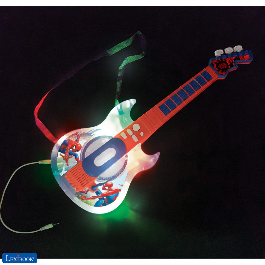 Spiderman E-Gitarre und Brille zum Lernen und Spaß haben.
