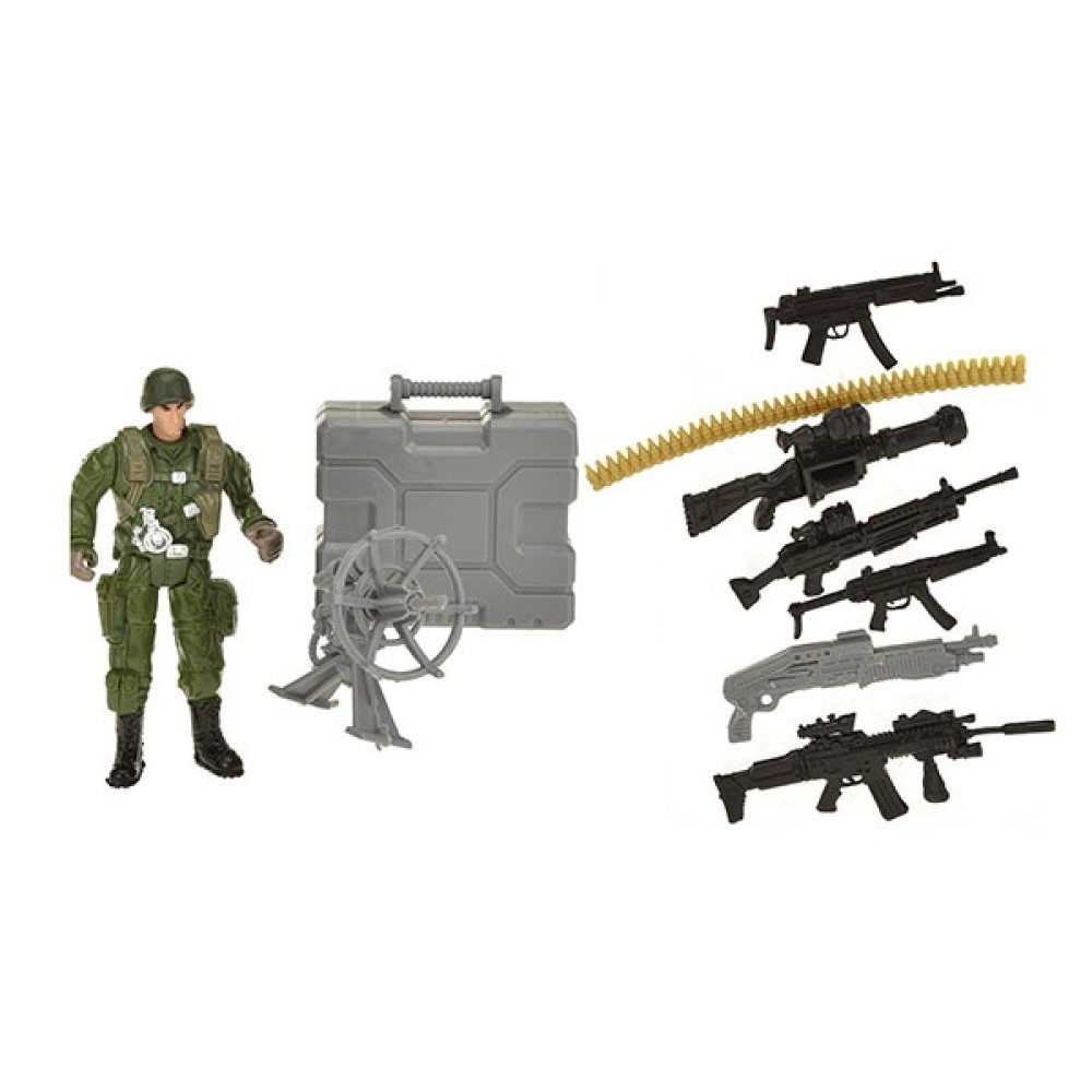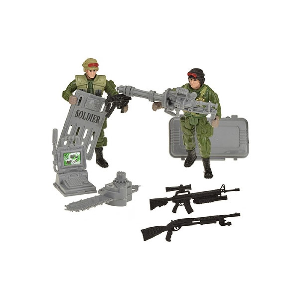 Inhalt: 3 Soldaten, 10 Waffen, 2 Koffer, 1 Computer, 1 Kettensäge, 1 Schild, 1 Satellit
